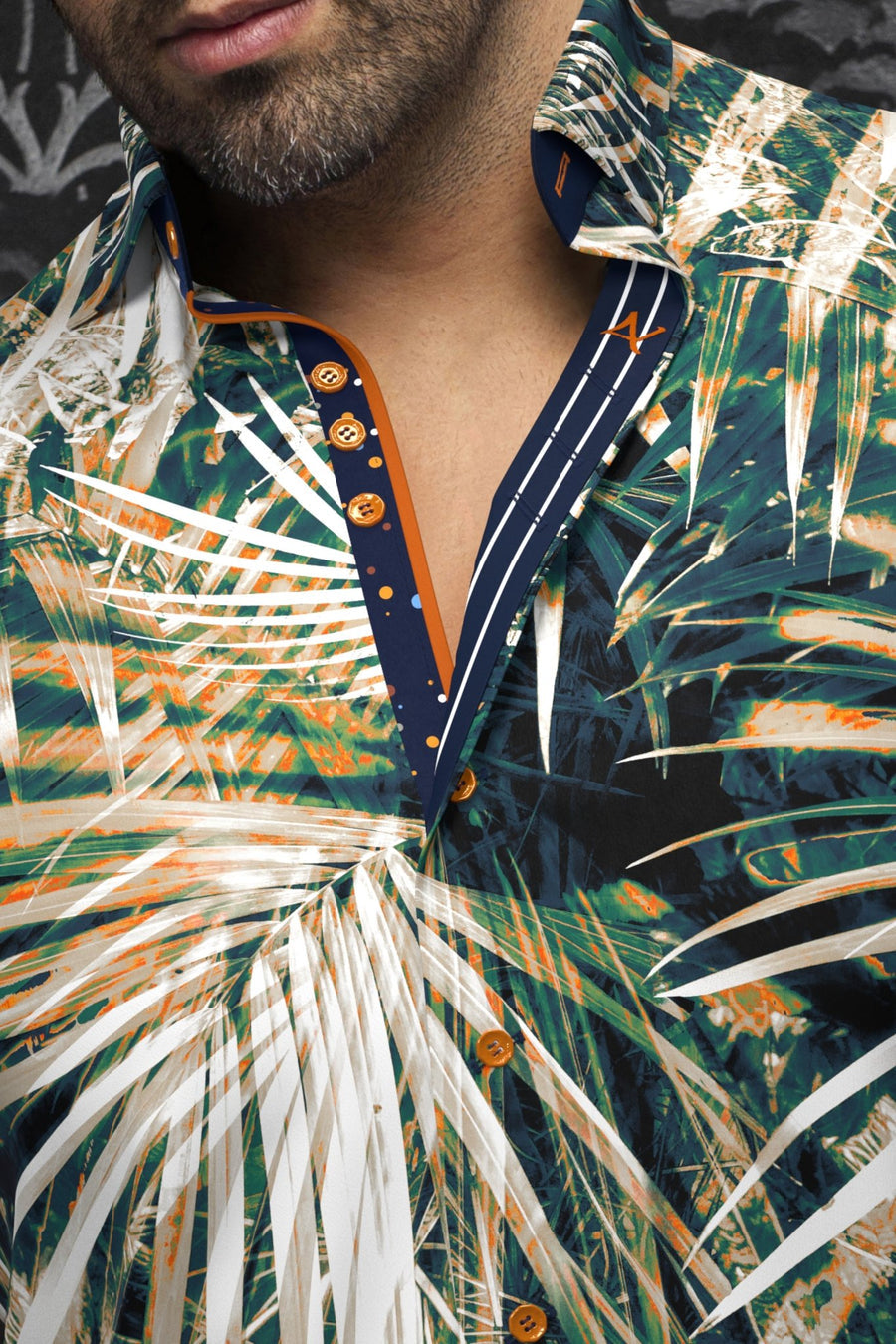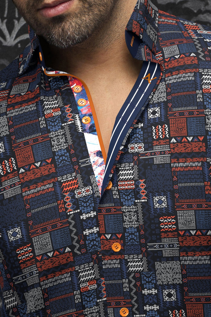 Au Noir Extensible Short Sleeve Shirt | Finlay Navy Orange