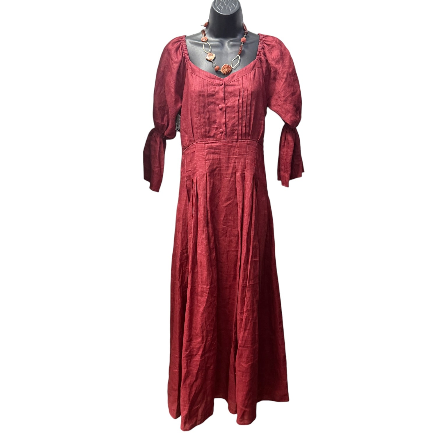 Linen Victorian Midi Dress By Rose & Linen In Red, Size: M