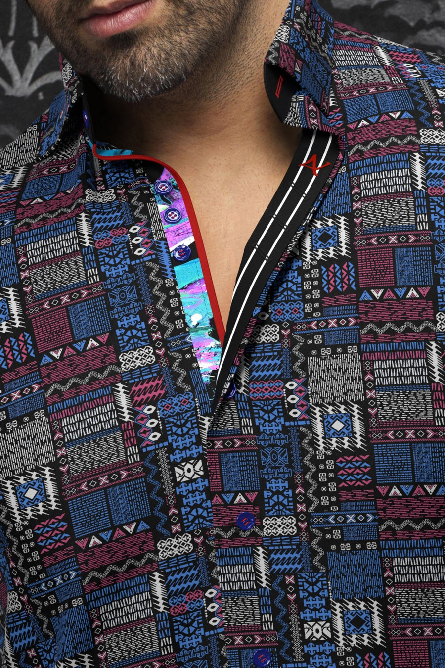 Au Noir Extensible Short Sleeve Shirt | Finlay Black Multi