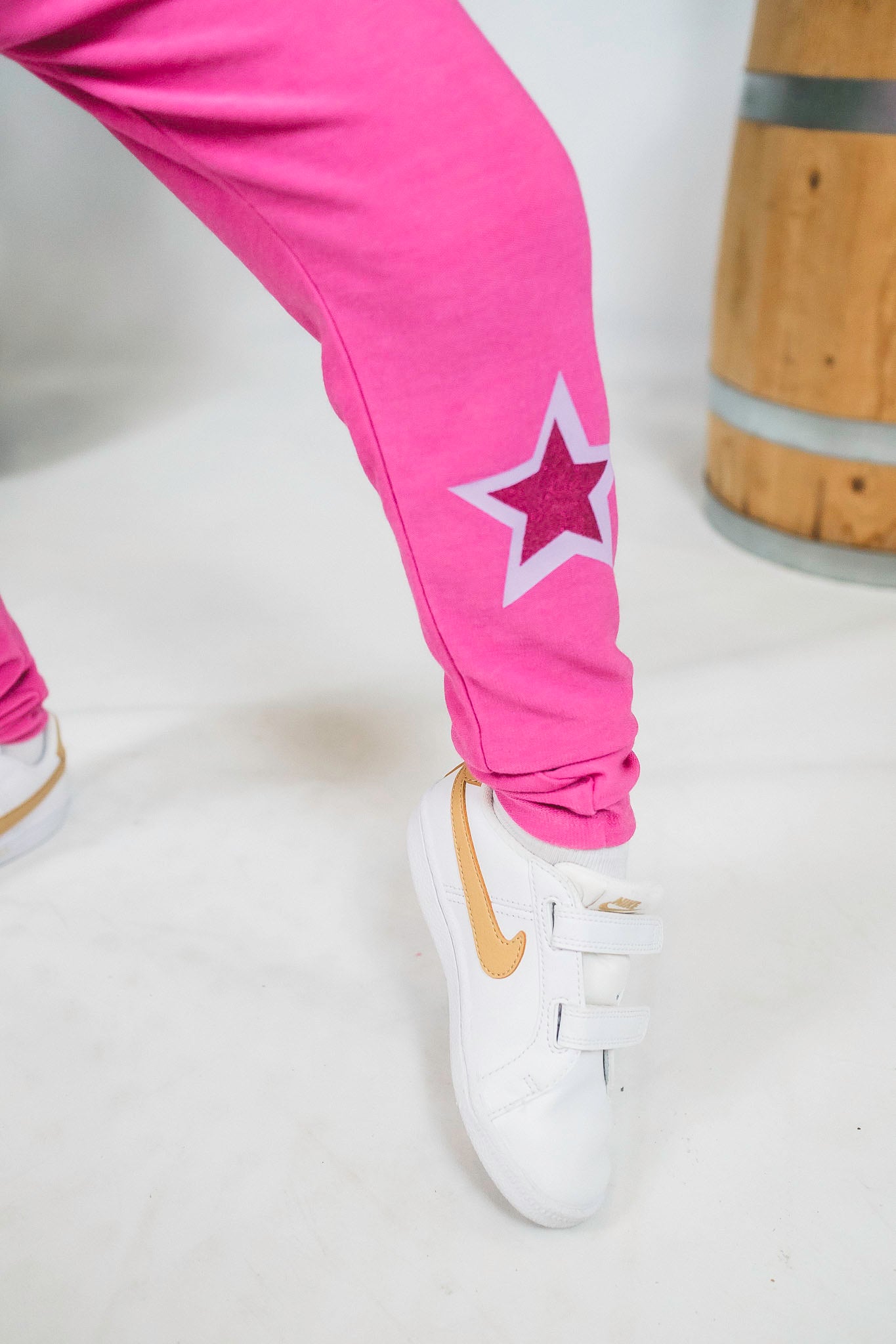 Brighten up your tot's wardrobe with these bold leggings from Chaser! They come in a hot pink hue and feature a glittery star on each shin.