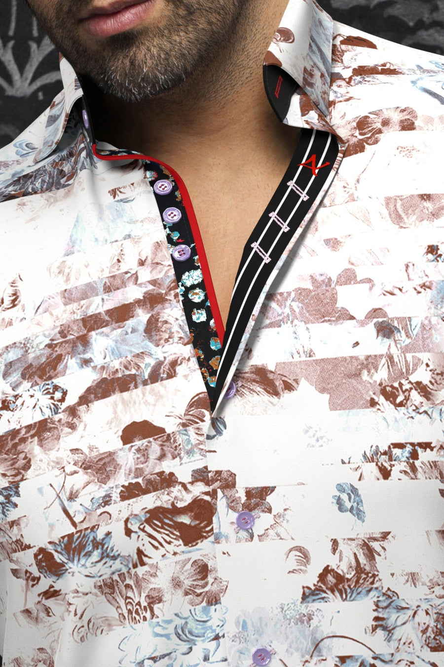 Men's casual dress shirt. Stand out with contrasting patterns and sophisticated details. Comfortable with high end stretch cotton fabric.