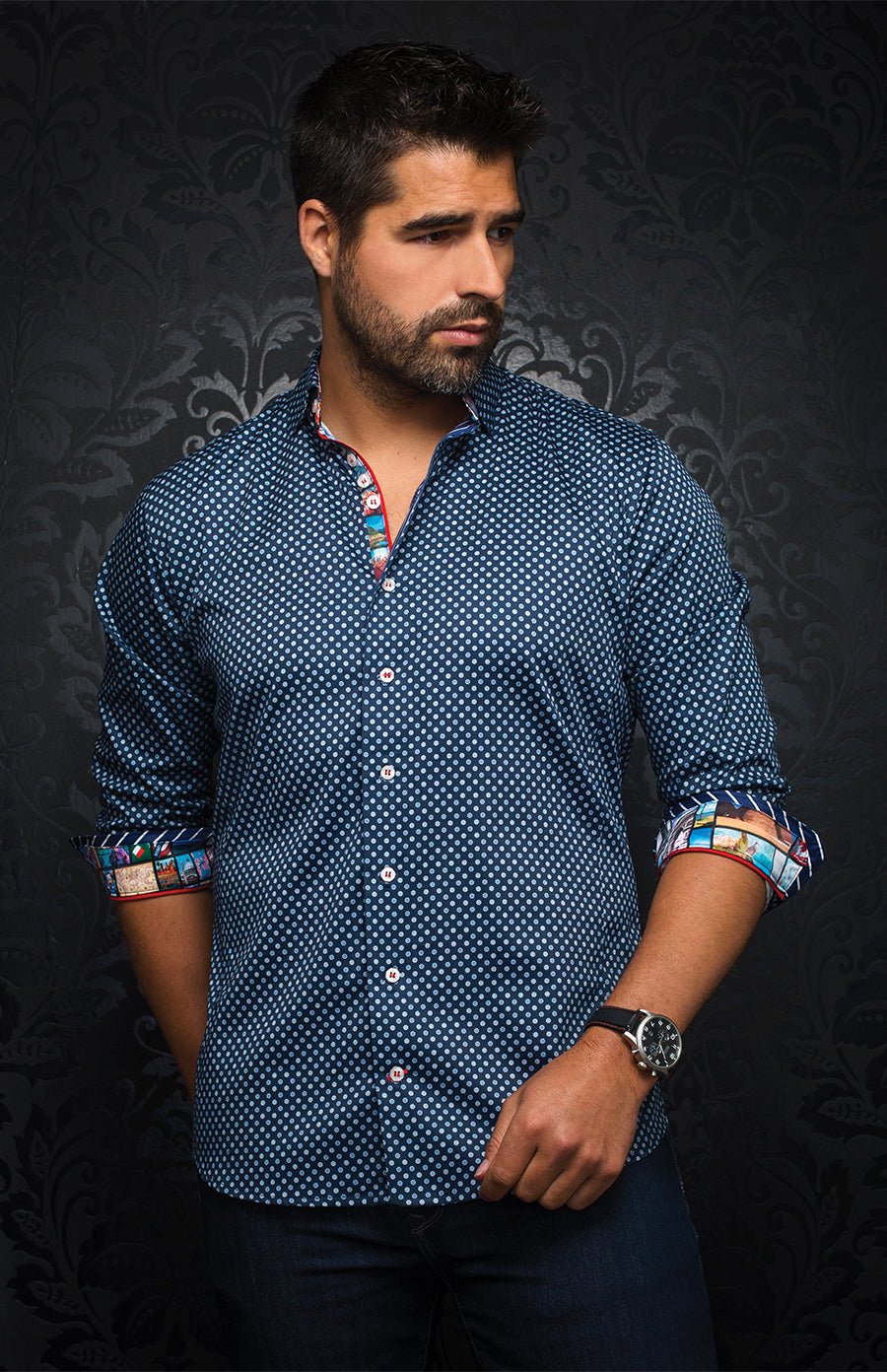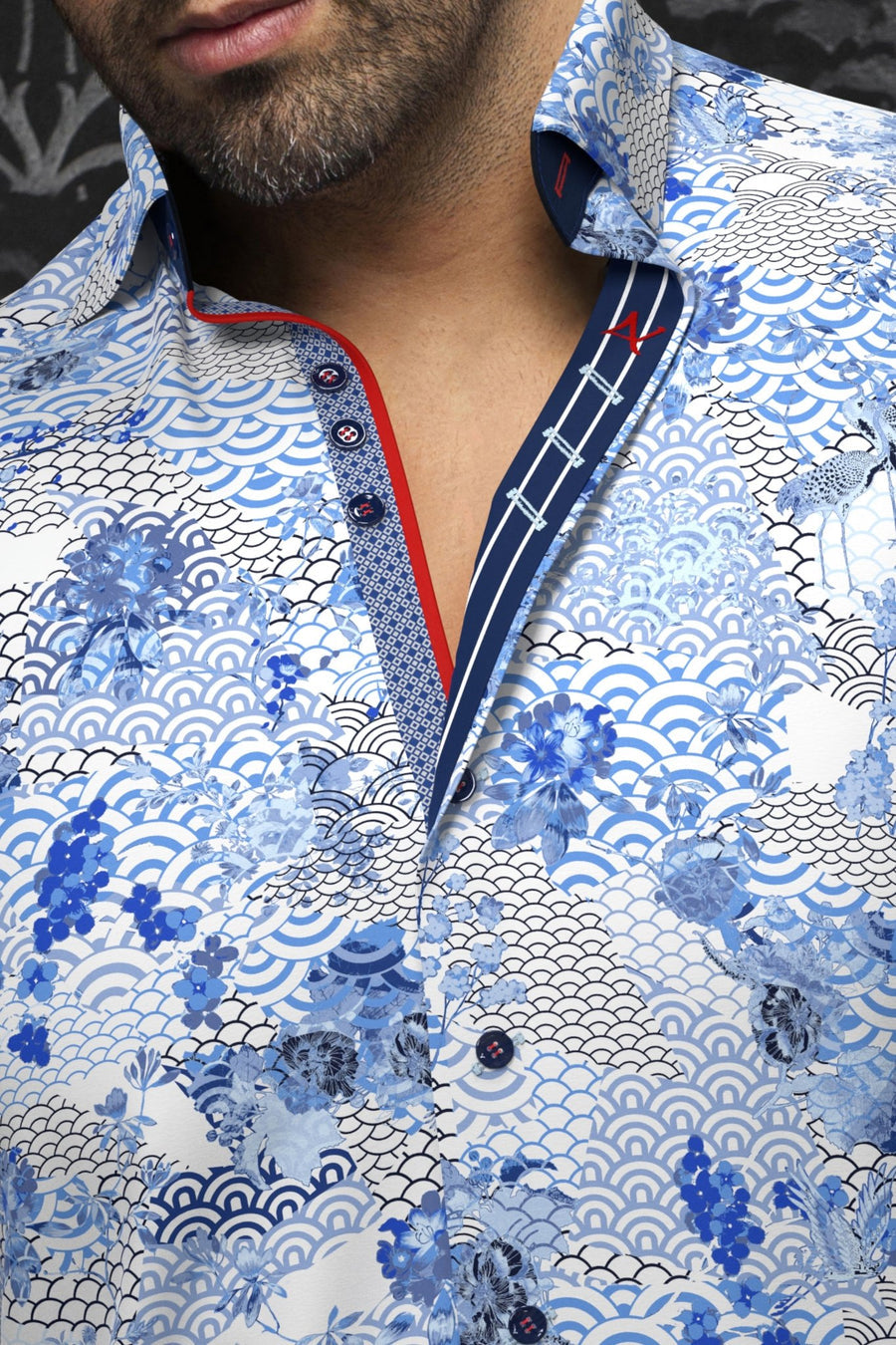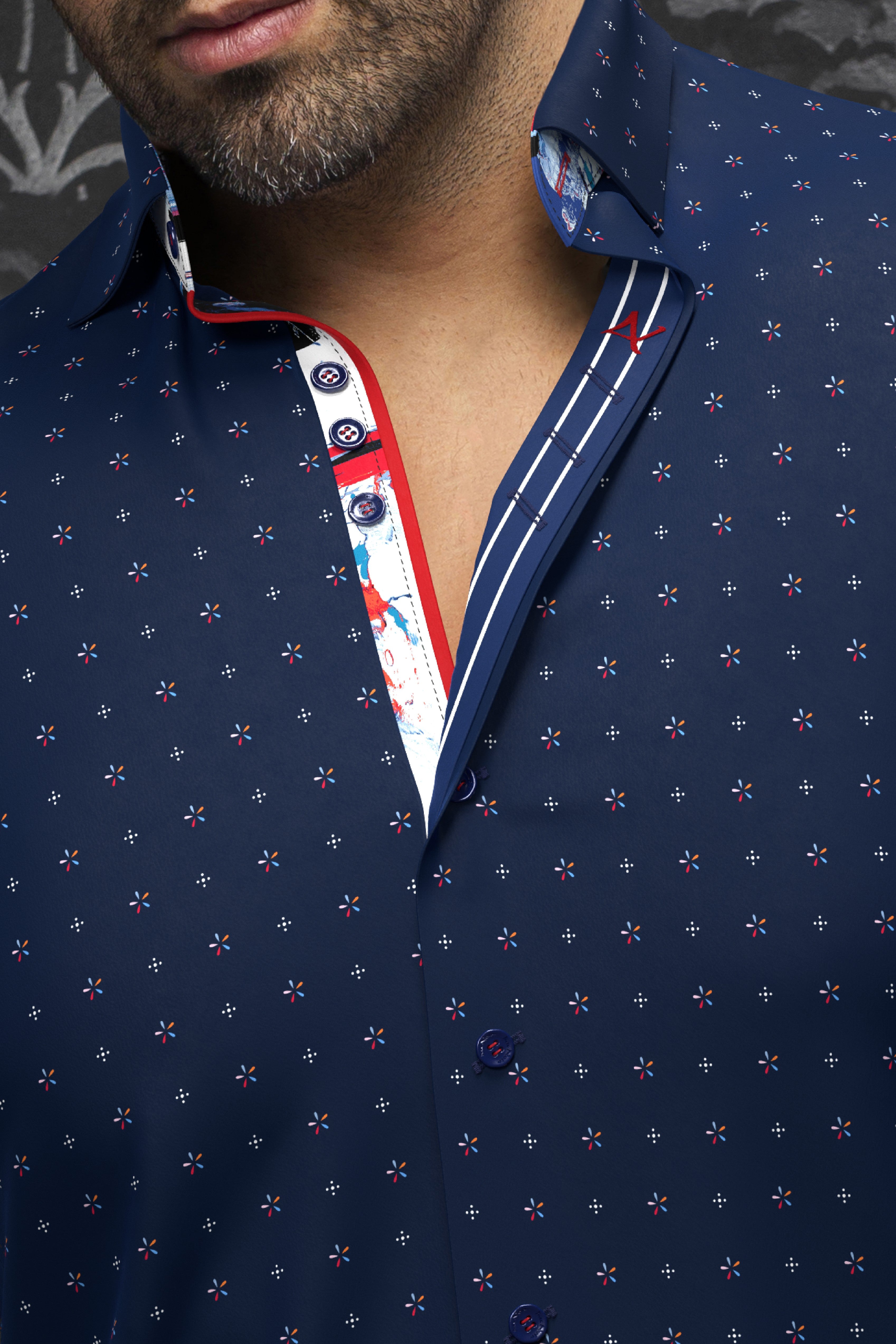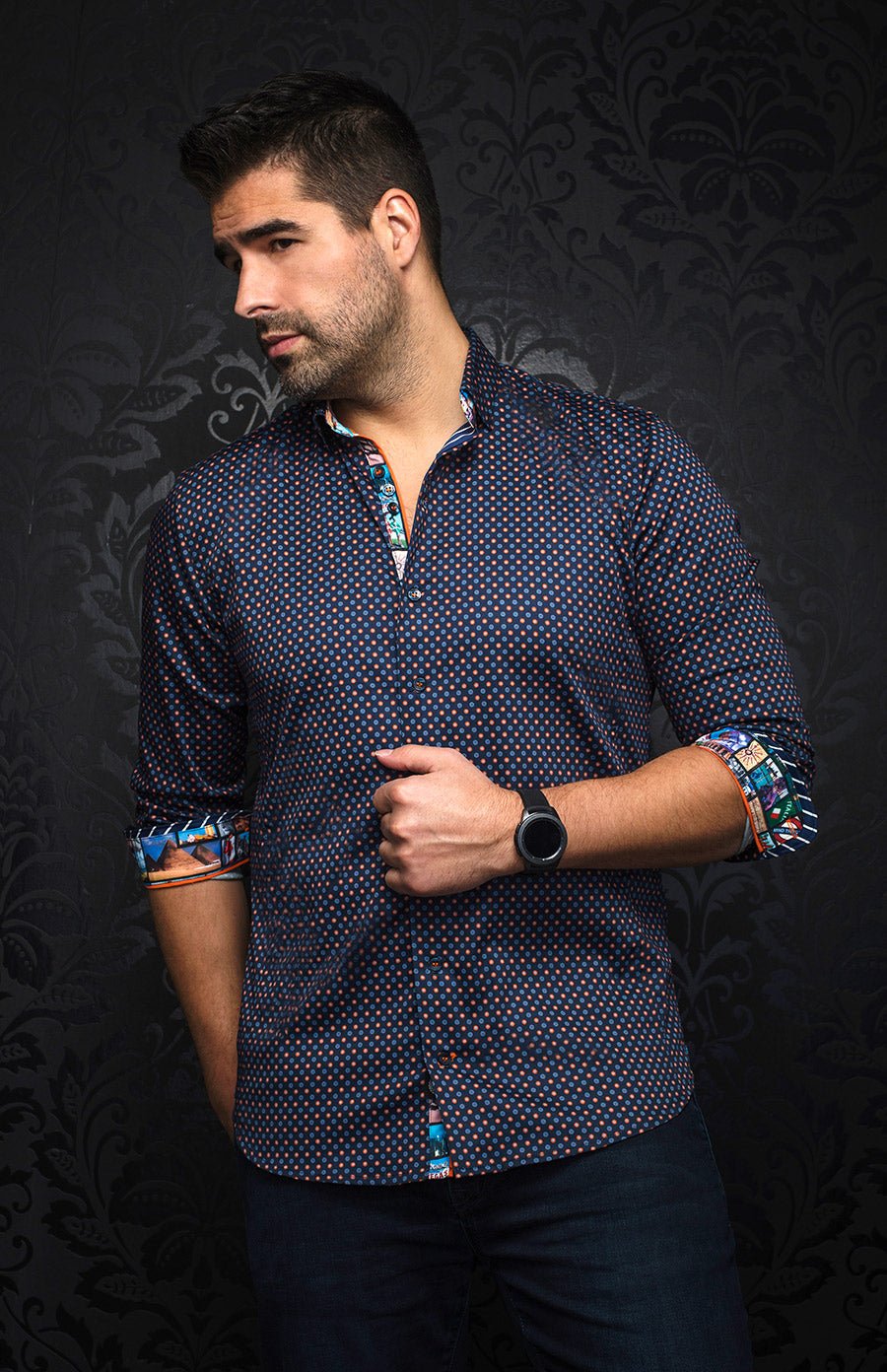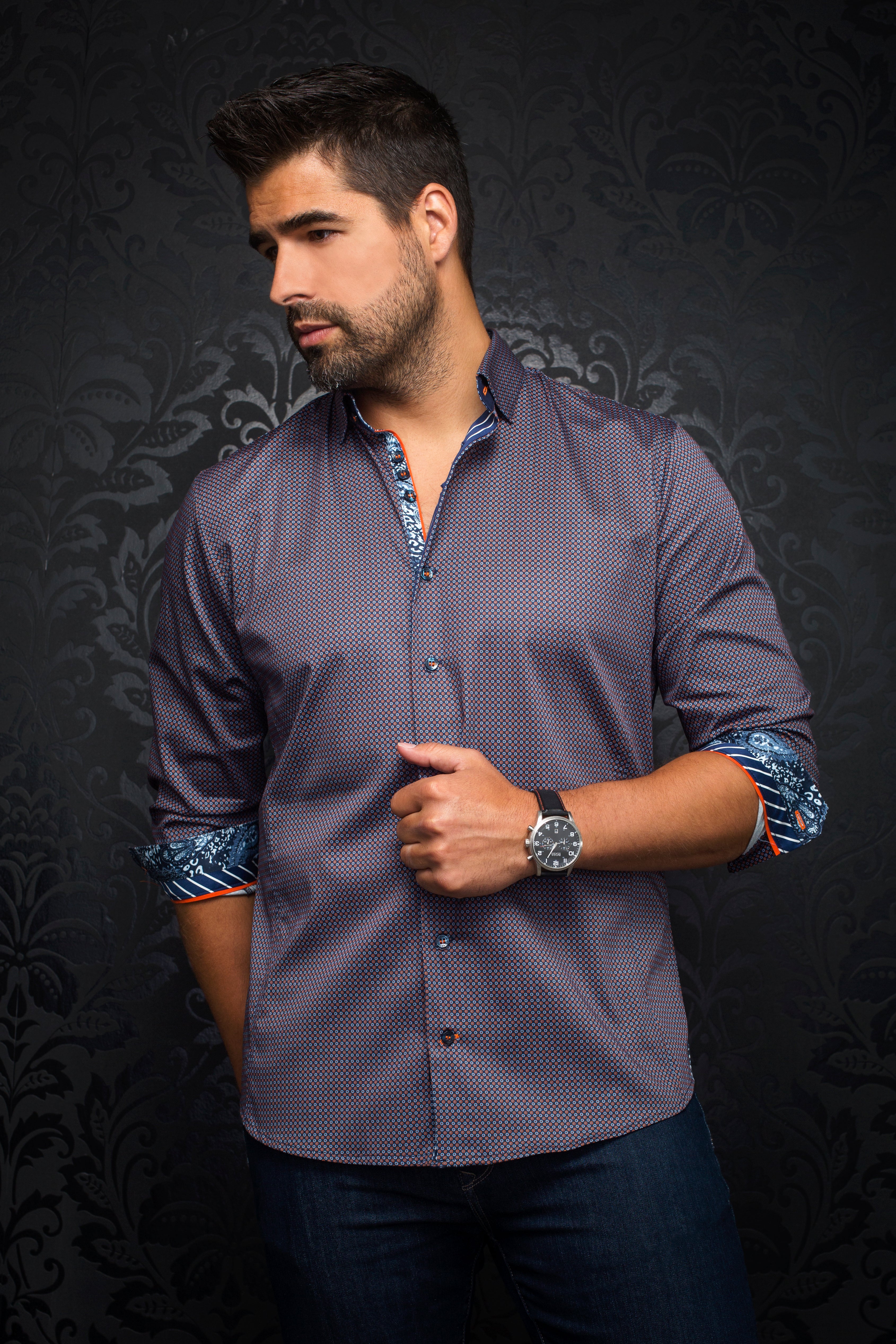 Au Noir Stretch Shirt | Carelli Navy Orange
