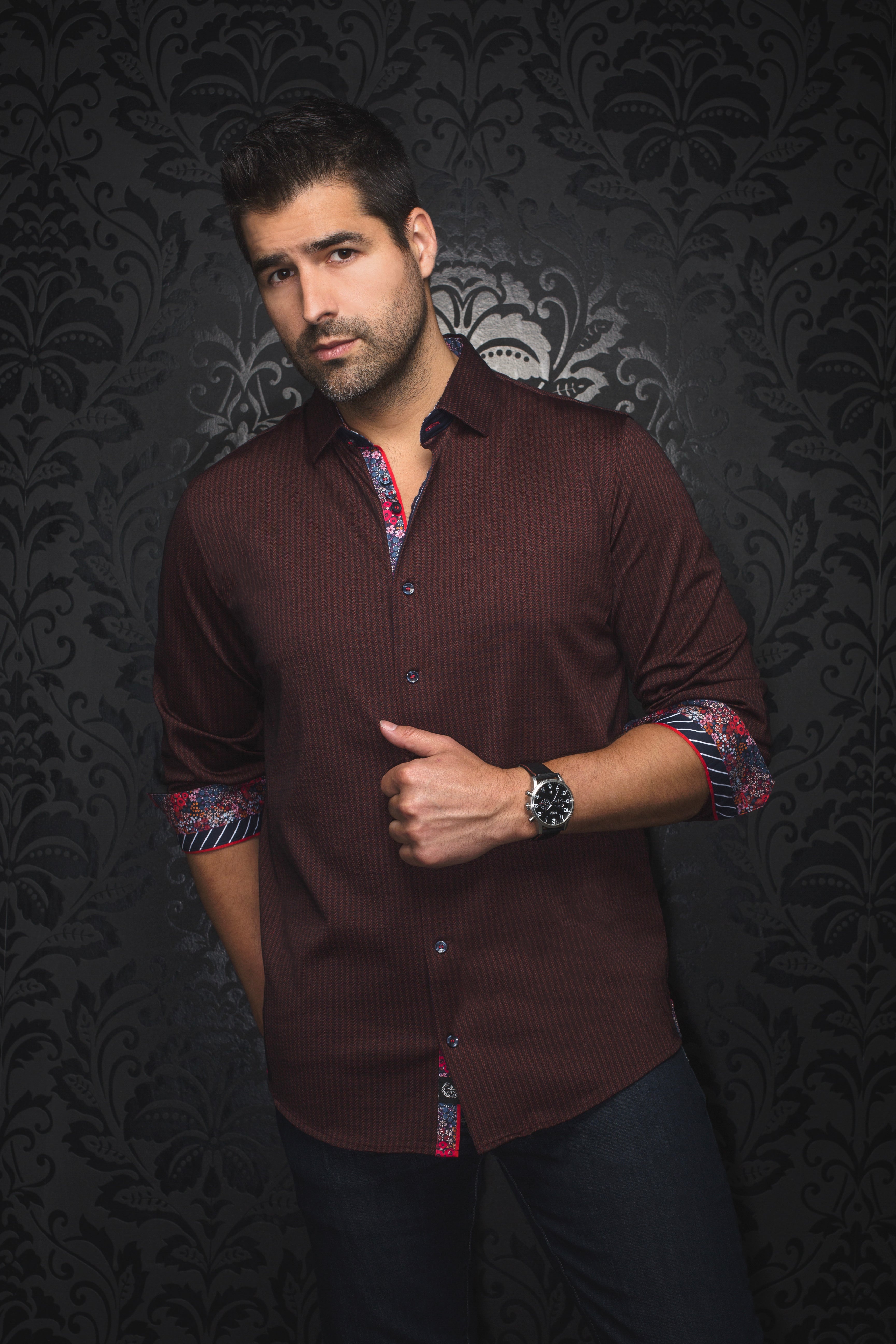 Au Noir Stretch Shirt | Carelli Burgundy