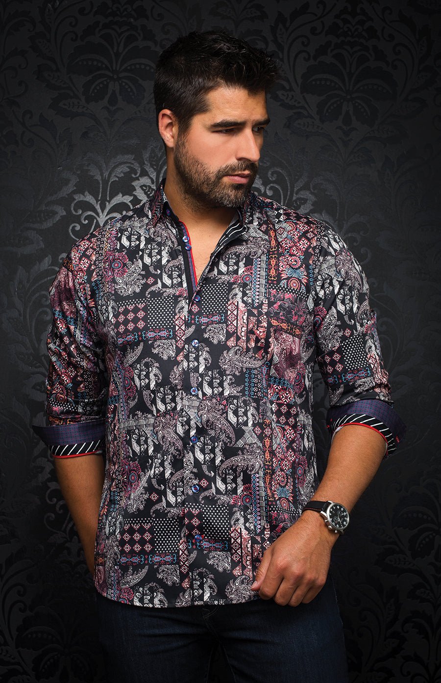 Au Noir Stretch Shirt | Blondel Black/Red