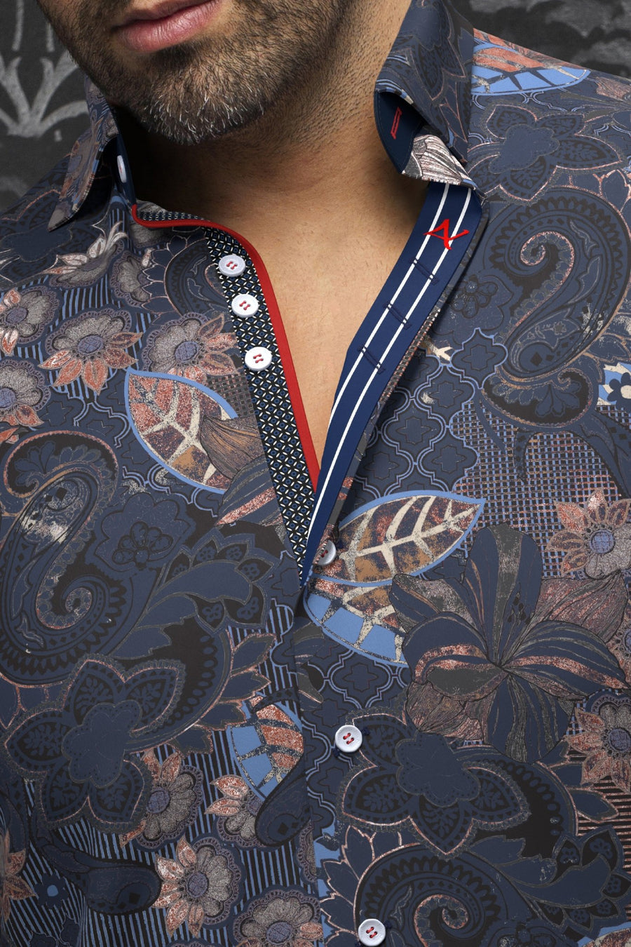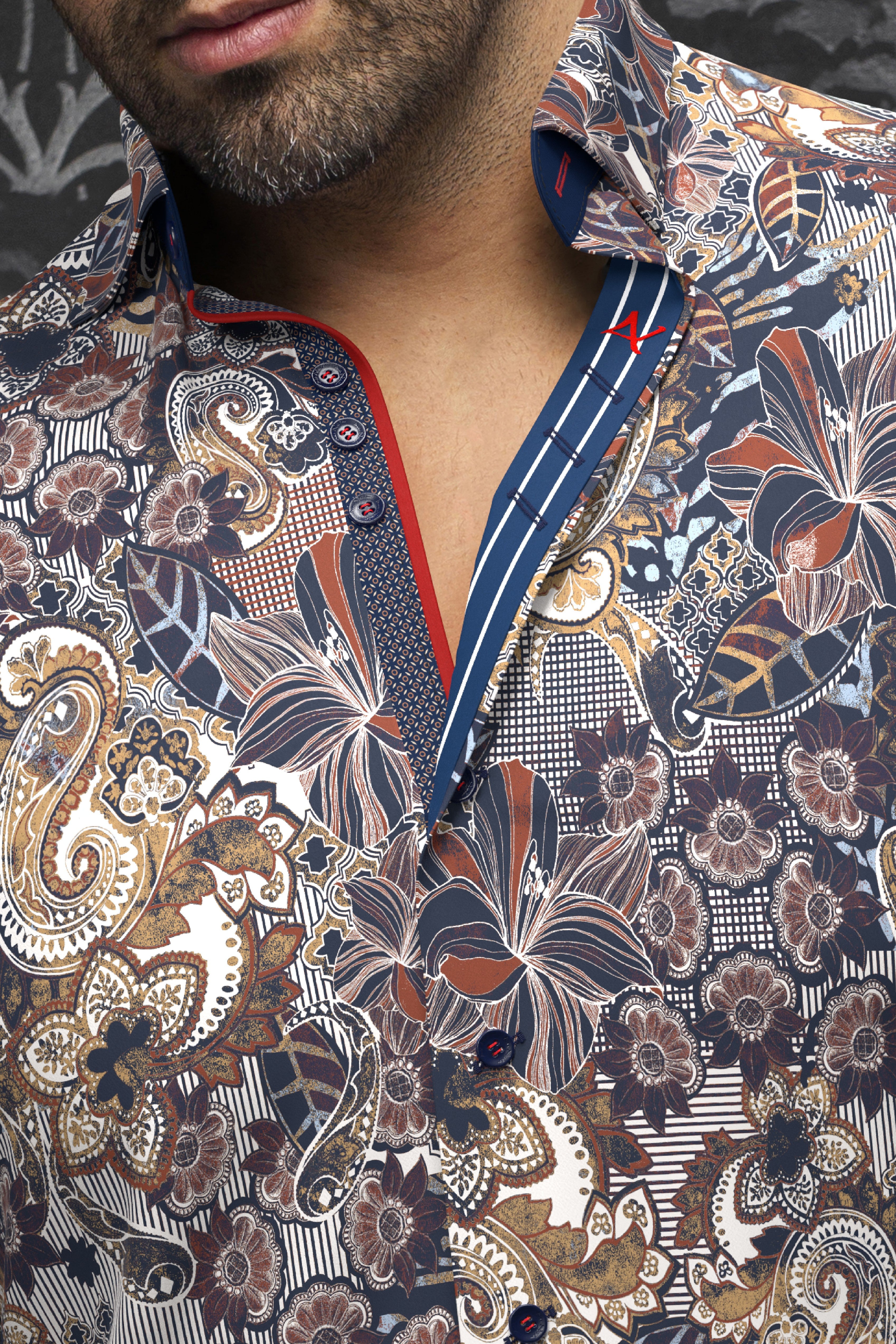 Au Noir Stretch Shirt | Lanzani Navy Tobacco